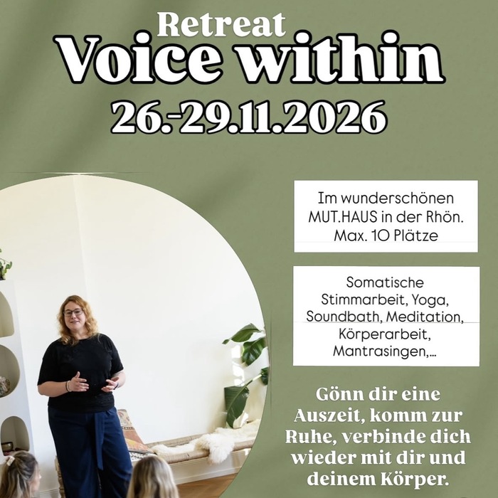 Ich begleite Frauen dabei, wieder Zugang zu ihrem Körper und ihrer Stimme zu finden. Im Retreat halte ich den Raum und leite die Stimm- und Körperarbeit.